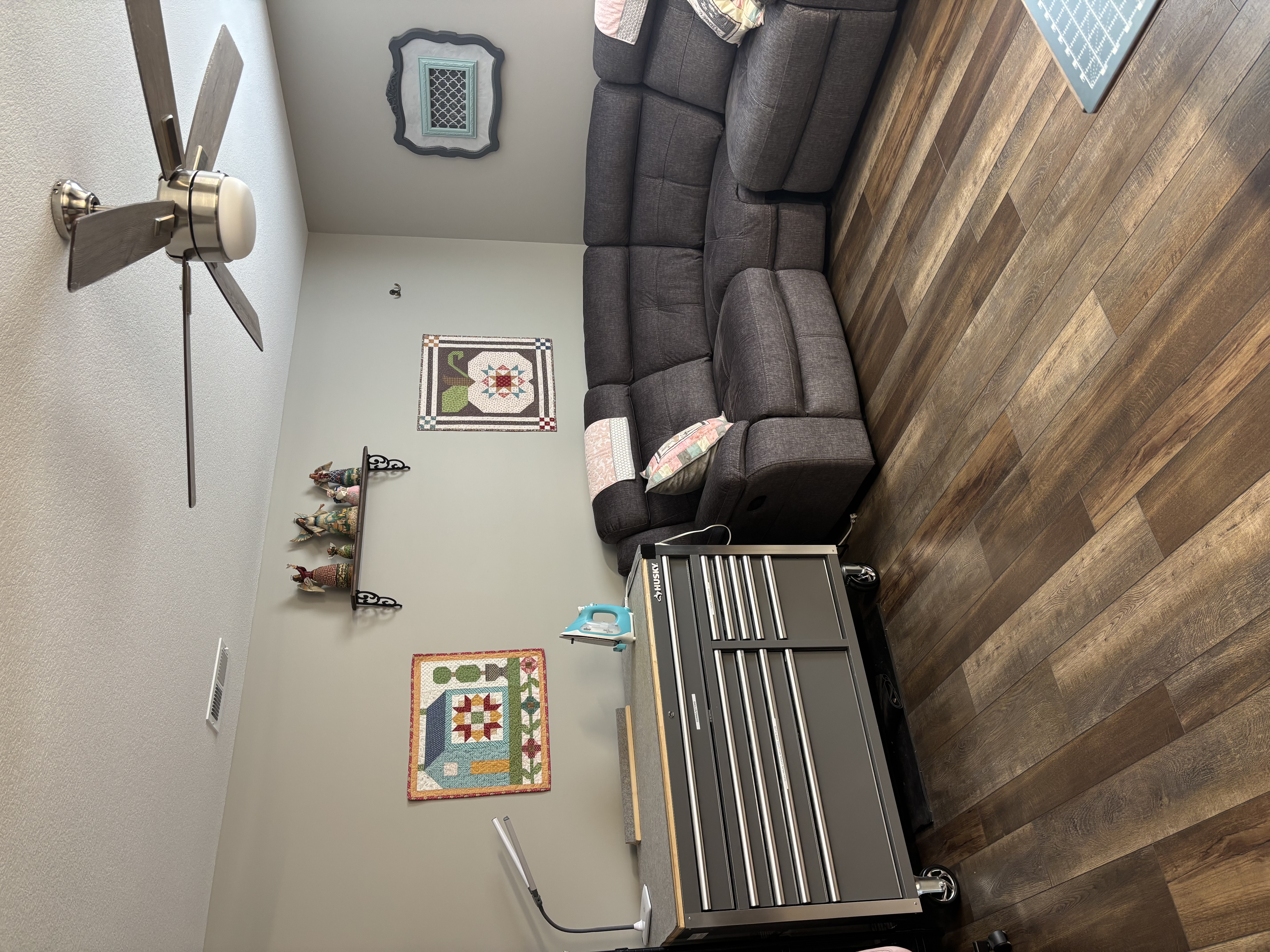 Our workroom doubles as a living room for family rentals, but is perfectly equipped for quilting and crafting retreats.